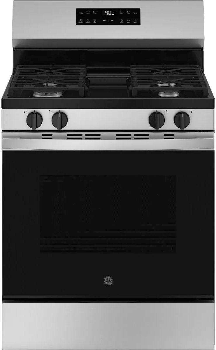GE® 400 Series 30" Stainless Steel Freestanding Gas Range features SmartHQ™ Pro, 15,000 BTU Power Boil Burner, Precise Simmer Burner, Self-Clean with Steam Clean, Oven Storage Drawer, Heavy Duty, Dishwasher-Safe Grates and Large Capacity Oven.Read More